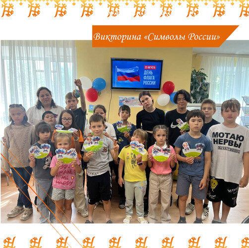 После беседы прошла викторина, которая состояла из нескольких интересных этапов. Ребята с азартом отвечали на вопросы о государственных символах, угадывали сказочных персонажей, повторяли русские народные узоры и вспоминали народные песни.